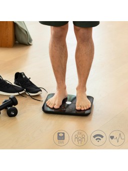 Balance Pèse-personne  avec analyse corporelle complète et connexion à l’application Pèse-personne impédancemètre• Synchronisation automatique : les données de chaque pesée sont téléchargées automatiquement via WIFI• Avec mesure de la fréquence cardiaque• Batterie intégrée pour un rechargement...