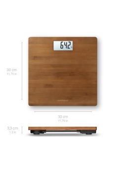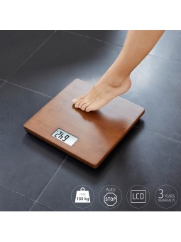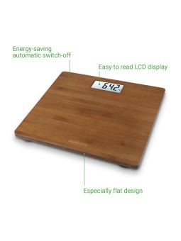 Pèse-personne en bambou · Balance Pèse personne avec surface en bambou de haute qualité pour une sensation de confort · Écran LCD facile à lire · Arrêt automatique pour économie d'énergie · Activation pratique « pas à pas » · Conception extra plate · Batteries incluses . Poids : 1.2 kg Garantie...