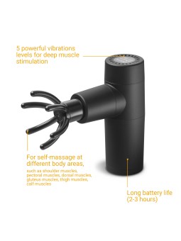 Massage gun -Mini · Massage en profondeur des tissus pour l'activation musculaire et la promotion de la régénération musculaire · Pour auto-massage sur différentes parties du corps, telles que les muscles des épaules, des pectoraux, du dos, des fessiers, des cuisses, des mollets · 5...