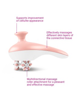 Masseur de cellulite · Favorise l'amélioration de l'apparence de la cellulite · Favorise la circulation sanguine et masse efficacement les différentes couches de la peau et du tissu conjonctif · 3 accessoires différents (rouleau de massage multidirectionnel, brosse en silicone avec...