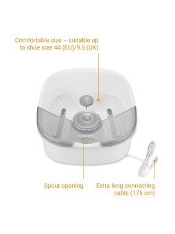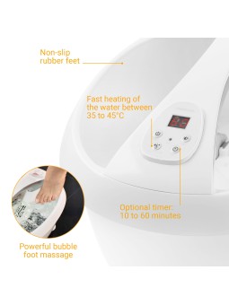 Bain de pieds · Massage puissant par bulles pour les pieds · Favorise la circulation sanguine et revigore les pieds fatigués · Réchauffement rapide de l'eau entre 35 et 45°C (réglable par incréments de 2°C) · Rouleaux de massage au milieu du spa pour masser la plante des pieds · Lumière de...