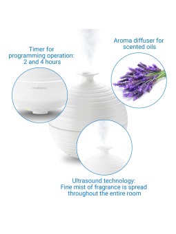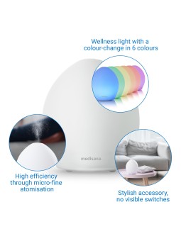 Préchauffage réduisant les germes • Humidificateur d'air avec technologie ultrasonique pour améliorer la qualité de l'air respirable • Propreté hygiénique grâce à une fonction de préchauffage intégrée réduisant les germes et les bactéries • Distributeur d'arômes intégré pour huiles parfumées •...