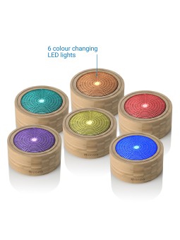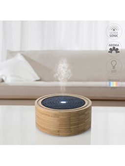 Fabriqué en véritable bambou • Diffuseur d'arômes décoratif en bambou pour huiles parfumées • Crée une fine brume avec la technologie ultrasonique, répandant le parfum dans toute la pièce • Lumière bien-être avec changement de couleur en 6 couleurs • Accessoire de vie élégant sans éléments de...