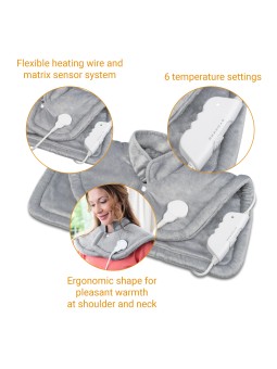 Avec 6 réglages de température • Fil chauffant flexible et système de capteur matriciel pour une répartition uniforme de la chaleur • Forme ergonomique pour une chaleur agréable au niveau des épaules et du cou Caractéristiques du produit : • Chauffage rapide avec 100 watts • Contrôleur pratique...