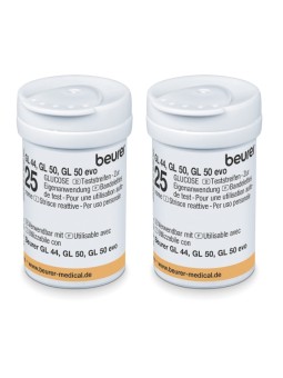 Bandes de test pour les lecteurs de glycémie GL 44/ GL 50 Qualité contrôlée des bandes de testContrôle de charge continu50 pièces (2 boîtes de 25 bandes de test chacune)Quantité de sang requise : 0,6 μlSans codeFacile à utiliserDispositif médicalÀ utiliser au plus tard 180 jours aprèsl’ouverture...
