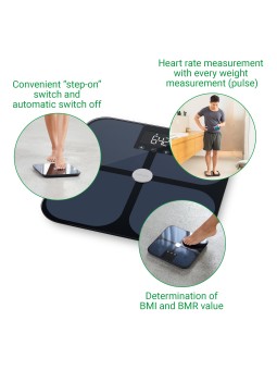 Pèse-personne avec analyse corporelle complète, interprétation des valeurs mesurées et écran XXL – jusqu’à 200 kg